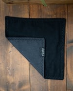Stealthy. Sleek. No-nonsense. This half-pint hank brings full blackout vibes with ultra-soft black flannel, a black microfiber backing, and matching black signature stitching. It’s low-key, high-class, and ready for anything.